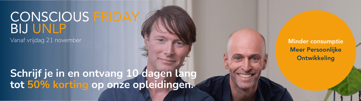 UNLP biedt al jaren toonaangevende opleidingen en workshops op het gebied van NLP, persoonlijke ontwikkeling en leiderschap. Met onze Conscious Friday kortingen maken we persoonlijke groei toegankelijker dan ooit. Wat je kunt verwachten: